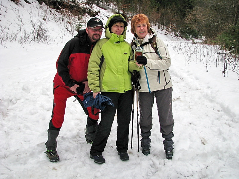 | Primátorské výstupy na Drienok sú najstarším verejným turistickým podujatím svojho druhu na Slovensku. Spoluorganizátorom podujatia bývajú pravidelne starostka obce Rakša Anka Ursínyová a primátor mesta Turčianske Teplice Michal Sygút. Na fotografii je jeden z donorov 37. ročníka Primátorského výstupu na Drienok Rasťo Matula z Martina s priateľkou Hankou (v zelenom) a podpredsedníčka Prvého klubu turistov v Diviakoch Marietka. Snímok som naexponoval vo "vzácnej" chvíli, keď sa dotyční posmeľovali a rozhodovali "tekutými" dobrôtkami, či sa vôbec v tom daždi vydajú na cestu k vrcholu Drienka. V doline Mača, kde sa prave nachádzame, totiž husto prší. | |