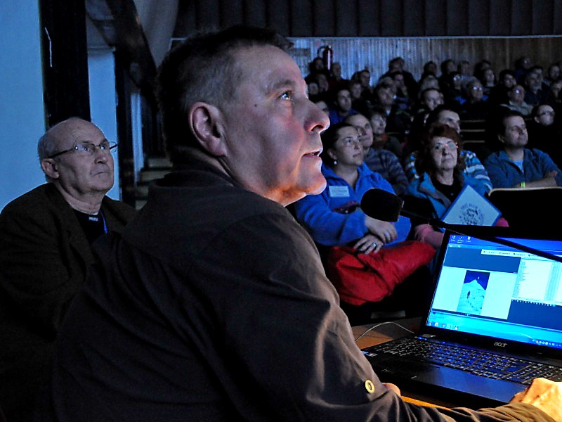 | Miloš KUCHÁREK, majster turistiky z Malaciek už precestoval kusisko sveta. Divákom 33. ročníka Festivalu ĽUDIA a HORY ukázal a aj vtipným komentárom priblížil svoje zážitky z troch ostatných expedícií do Stredoázijských hôr. Konkrétne z Kazachstanského pohoria Zaikijskij Alatau, z Tadžikistanského Pamíru a sólovýstupu na Pik Korženevskoj 7105m a Kirgizského Ťan Šanu, kde sa pokúsil o zdolanie charizmatického "krtinca" Chan Tengri 7010m. Že to boli "dostatočne" pútavé zážitky svedčí aj pozornosť a napätie v tvári Štefana Hudáka (vľavo) a Eriky Fábryovej a Marietky Bernátovej (vpravo). | |