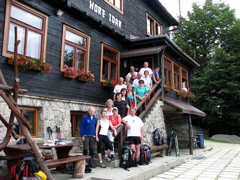 | Je nedeľa. Po včerajšom, síce nádherne slnečnom dni, ktorý však všetkých dosť vytrápil a "vlahej" noci budeme dnes pokračovať do cieľa 33. ročníka Prechodu hrebeňom Malej Fatry. Keďže u nás a to aj v týchto nadmorských výškach príšerne zúri "tota demokracia" (budete sa diviť, ale zaslúžene som dal to slovo do uvodzoviek, to aby bolo jasno!!!), ten cieľ bude na niekoľkých miestach. Fototermín pred chatou na Kľačianskej Magure. | |