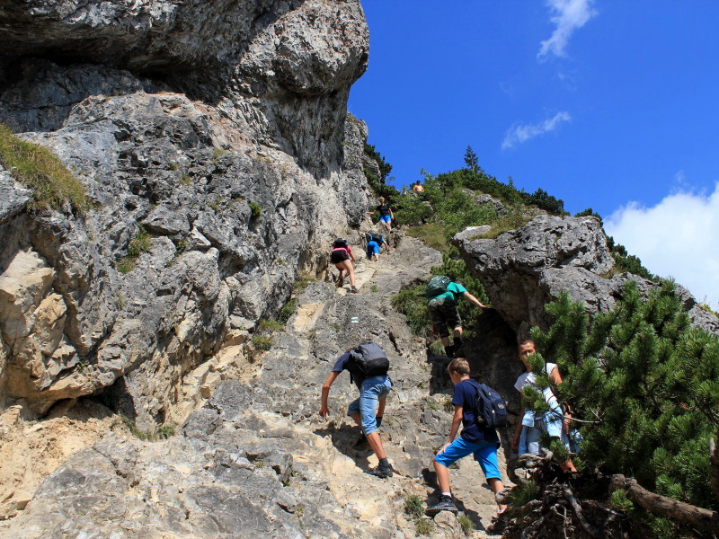 | A toto už je zaistená cesta na Malý Rozsutec 1343m. Neskutočné zážitky. Kto to nevidel...a nepočul...neuverí. Zvlášť pri návrate som tam videl šplhať cca troj až päťročné deti a to so slzami v očiach. Dokonca jedna, nazval som ju "krkavčia matka" mala pri realizovaní tohto úseku na chrbte (v sedačke) niekoľkomesačné batoľa. Ľudia, zvlášť niektorí dospeláci sú naozaj, ale fakt - blázni. | |