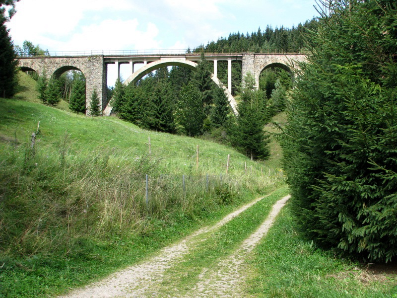 | Pri železničnej zastávke Telgárt - Penzión obdivujeme ďalší skvost slovenského železničného staviteľstva - Telgártsky viadukt, s tunelom a tzv. Telgártskou slučkou". Telgártsky viadukt je vysoký 22 a dlhý 86 metrov. Je zaujímavý tým, že bol prvou členenou oblúkovou konštrukciou zo železobetónu na tratiach Československých dráh. | |