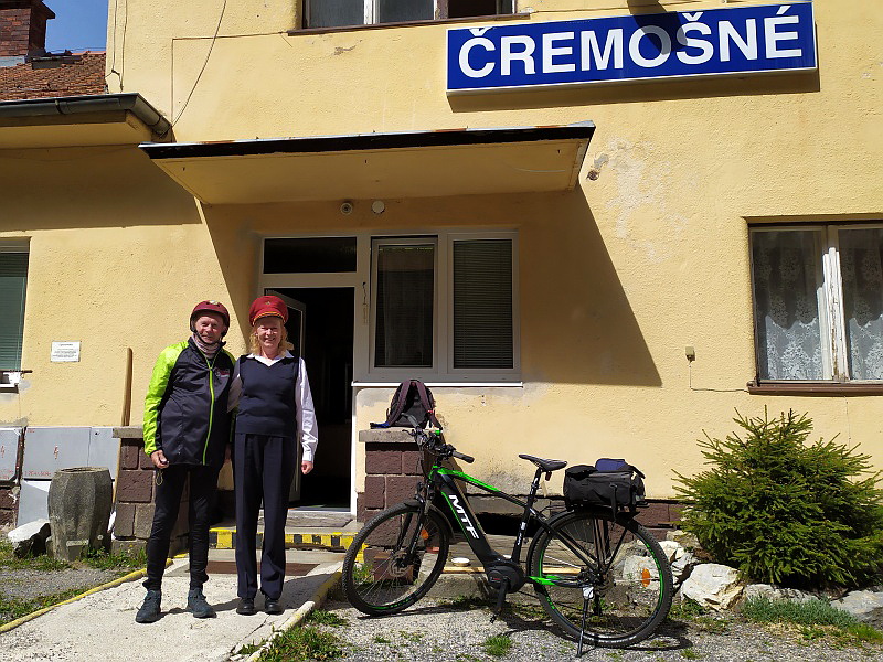 Železničná stanica v Čremošnom 685m a predposledný fototermín dnešného dňa: Števo Hudák so svojou dcérkou Soňou Švecovou, čoby výpravčičkou v službe.