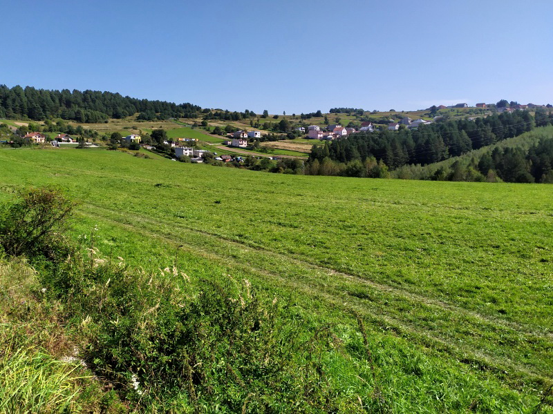 | A toto je už obrázok z iného "cesta" - po dlhom a príkrom stúpaní sa mi konečne v zornom poli objavila obec Kaľava 560m. I keď je to z Kluknavy do Kaľavy vzdušnou čiarom možno 10 km, Kaľava už patrí do okresu Spišská Nová Ves. Krajske sídlo majú obé obce v Košiciach. Tu, na tom kopčisku žije cca 400 obyvateľov. | |