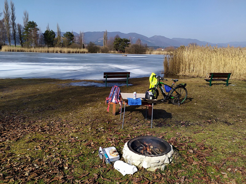 Aj dnes je pohoda, teplo a napriek zamrznutému jazeru aj príjemne. V túto chvíľu je už šetko prichystané na opekačku...