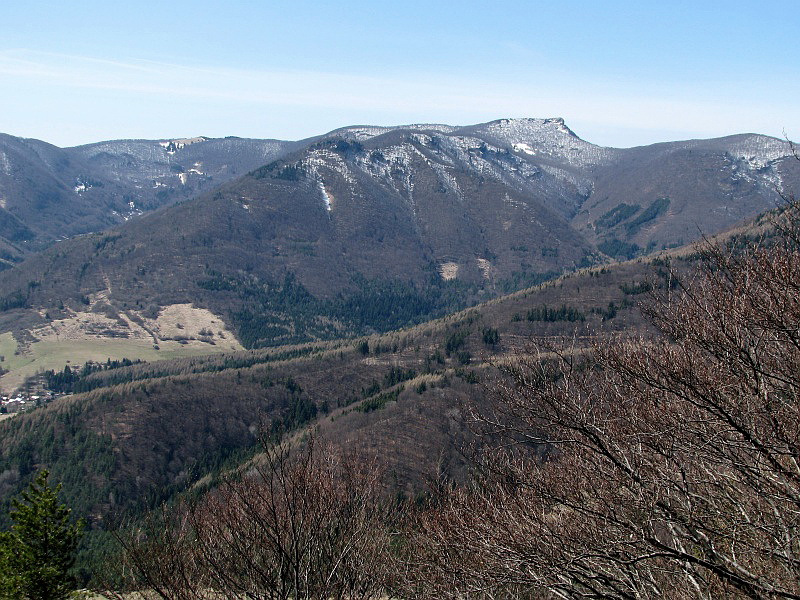 Kľak 1.352m, vľavo od neho hrebeň Partyzána 1.148m.