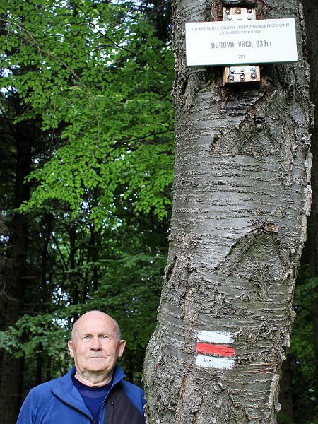 A, ešte jeden fototermín: Števo Hudák pod "našou" vrcholovou tabuľkou na Ďurovie vrchu 934m.