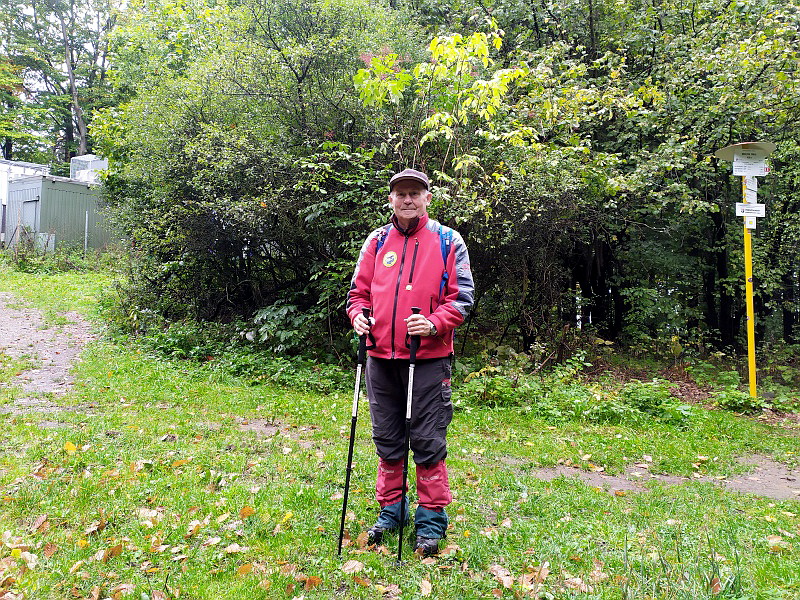 Fototermín na Bralovej skale 826m v DEŇ SENIÓROV 2022 1. októbra 2022 o 10,35 hodine: Števo Hudák sa tu trasie strachom, aby sa tu "nedovalil" nejaký medveď, lebo sám by sa asi ťažko ubránil "chlpatej presile".