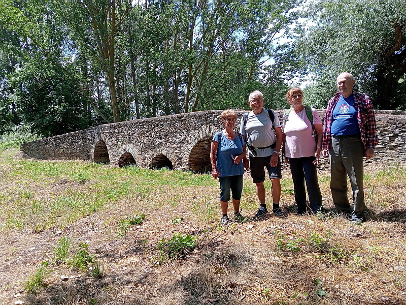| Most sv. Gotharda bol postavený v 14. storočí, aby preklenul dnes už zaniknutú riečku Tice. Ta tade tiekla ešte na začiatku 19. storočia ale dnes je už pod mostom iba a len - suché koryto. Na obrázku vidíme štvoricu diviackych seniorov, ktorí sa, okrem turistiky zaujímajú aj o históriu našej vlasti. Z ľavej strany sú to Naďa, Bolek, Marietka a Števo. | |