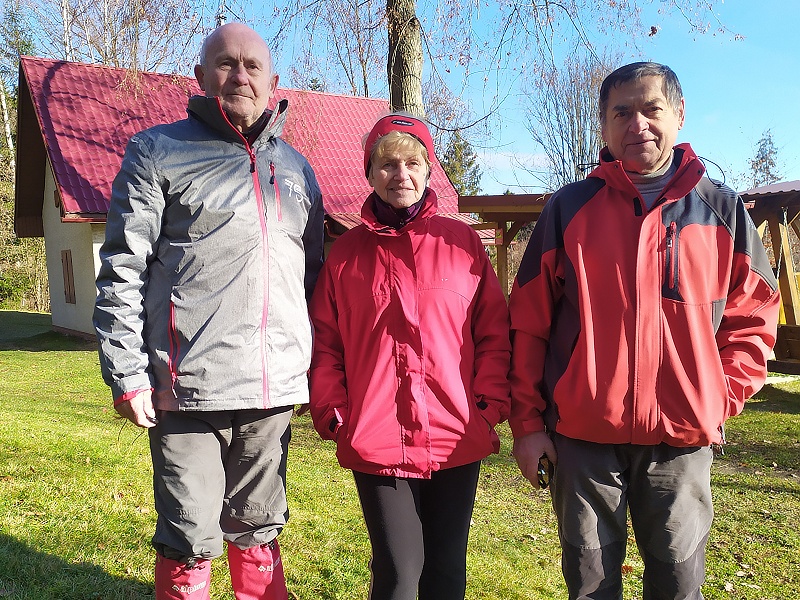 A nakoniec ešte jeden fototermín: Emil Kotián, Vierka Bellanová a Števo Hudák si pripomínajú dnešný významný sviatok Medzinárodný Deň Mužov pri chatke Na Krčme. Obrázky aj text Števo Hudák, majster turistiky.